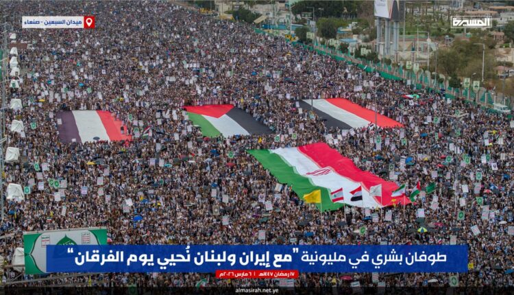 The capital, Sana’a, and a number of Yemeni governorates witnessed massive popular marches today, Friday, under the slogan “With Iran and Lebanon We Celebrate the Day of Criterion,” coinciding with the anniversary of the Battle of Badr, in which the participants affirmed that this anniversary reminds the nation of the inevitability of truth’s victory over falsehood.